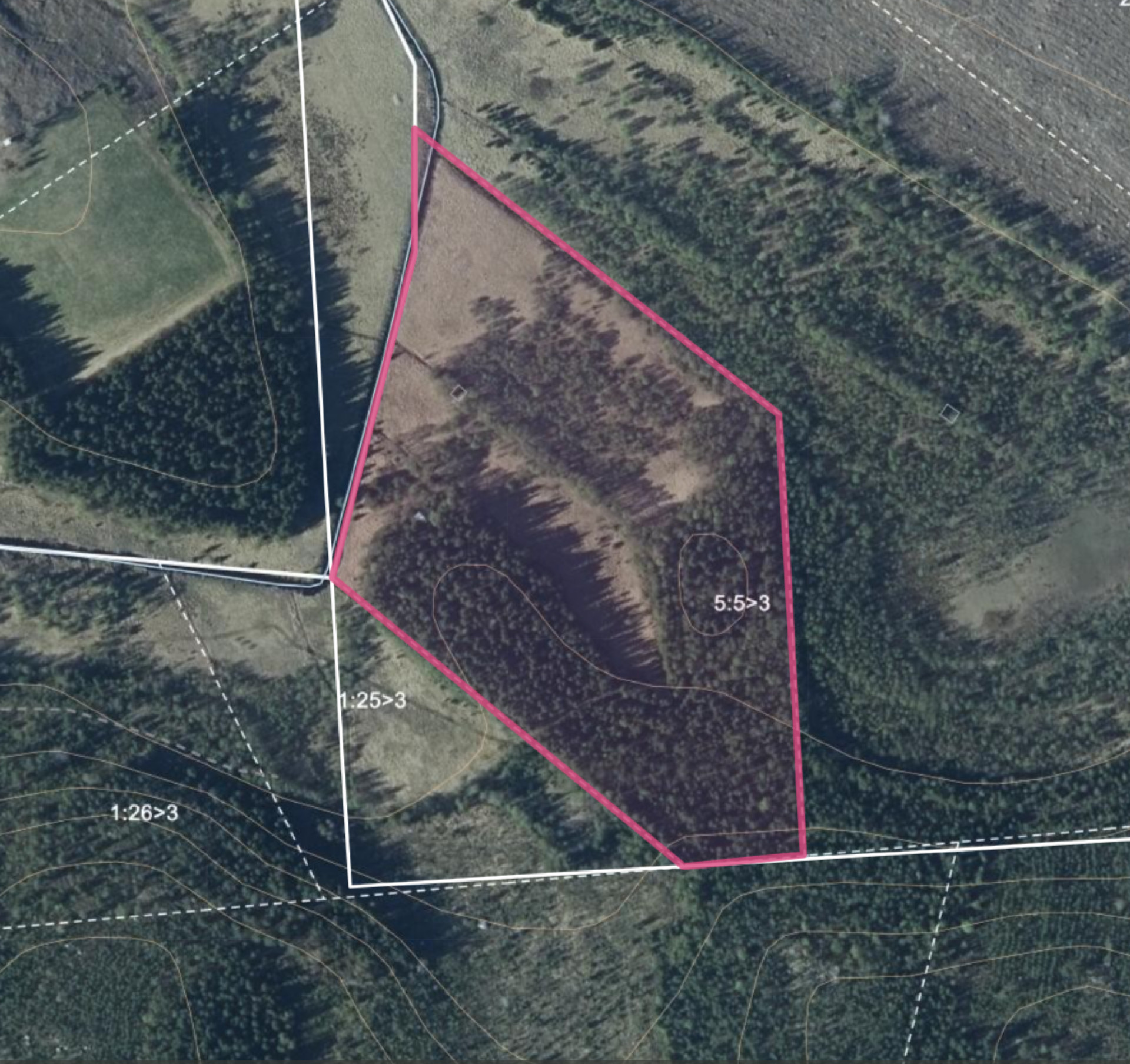 Se under fliken Dokument på Mäklarens sida för Skogsbruksplan och Skogskarta.