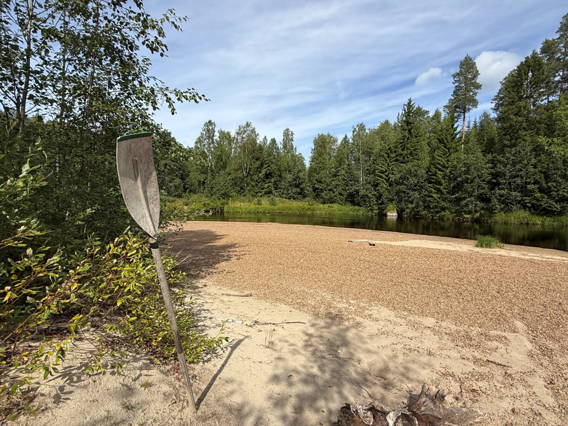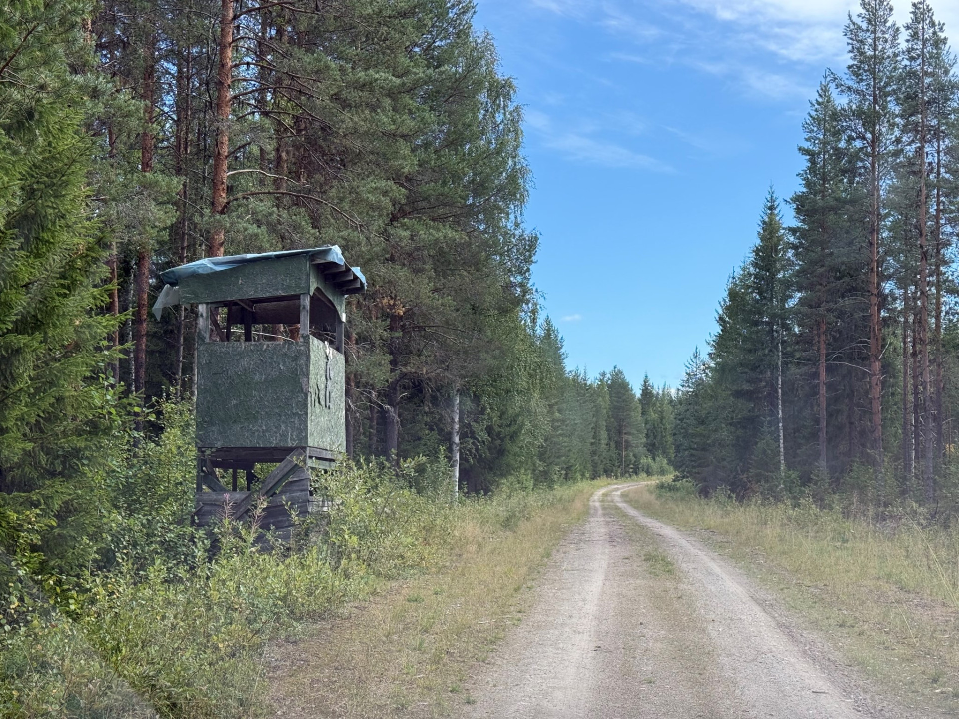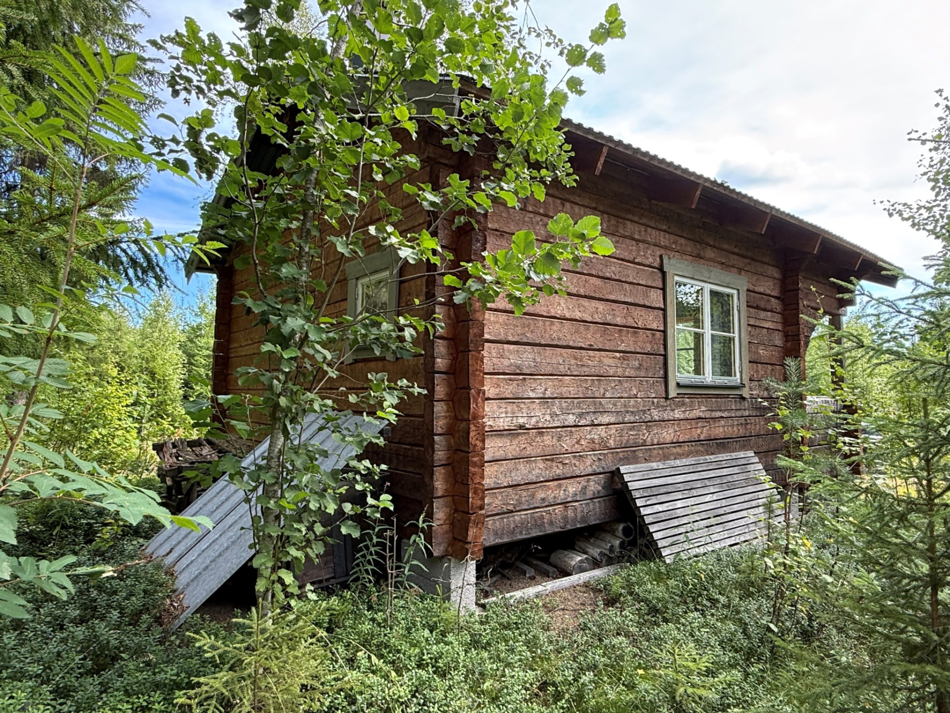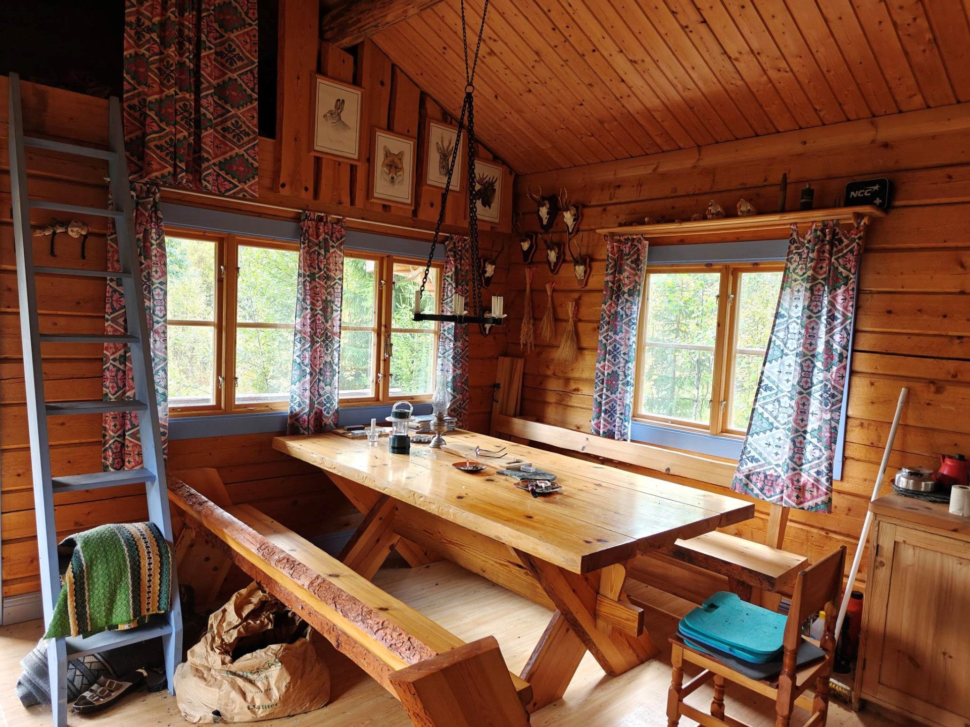 Det ingår en timrad skogskoja nere vid Lögdeälven som kan nyttjas för övernattning i vacker vildmarksmiljö.