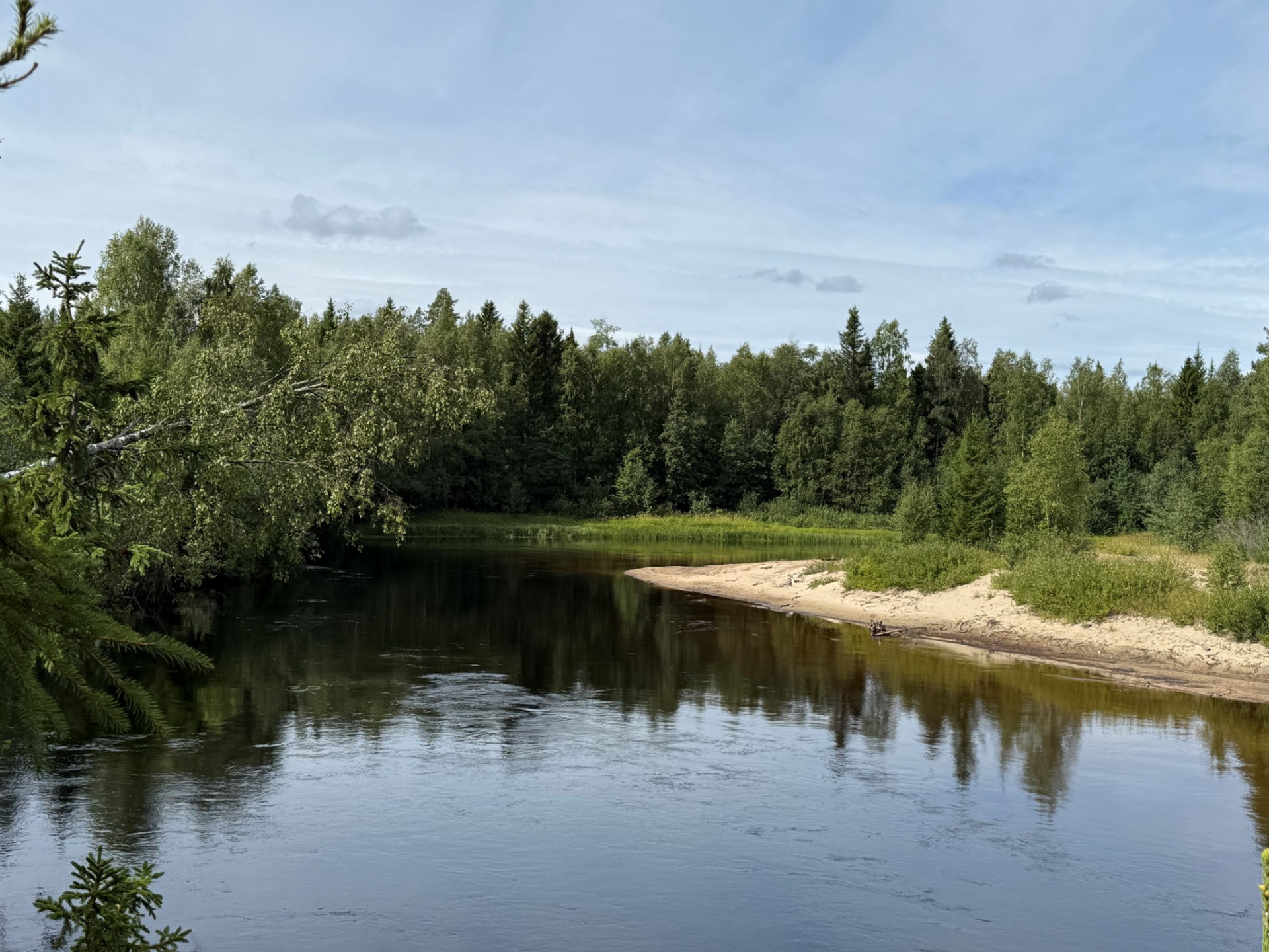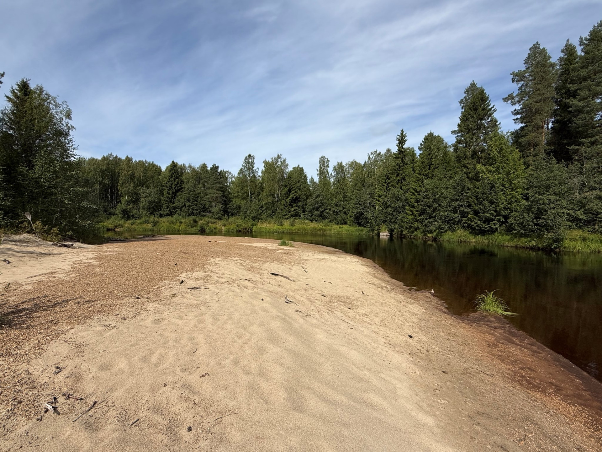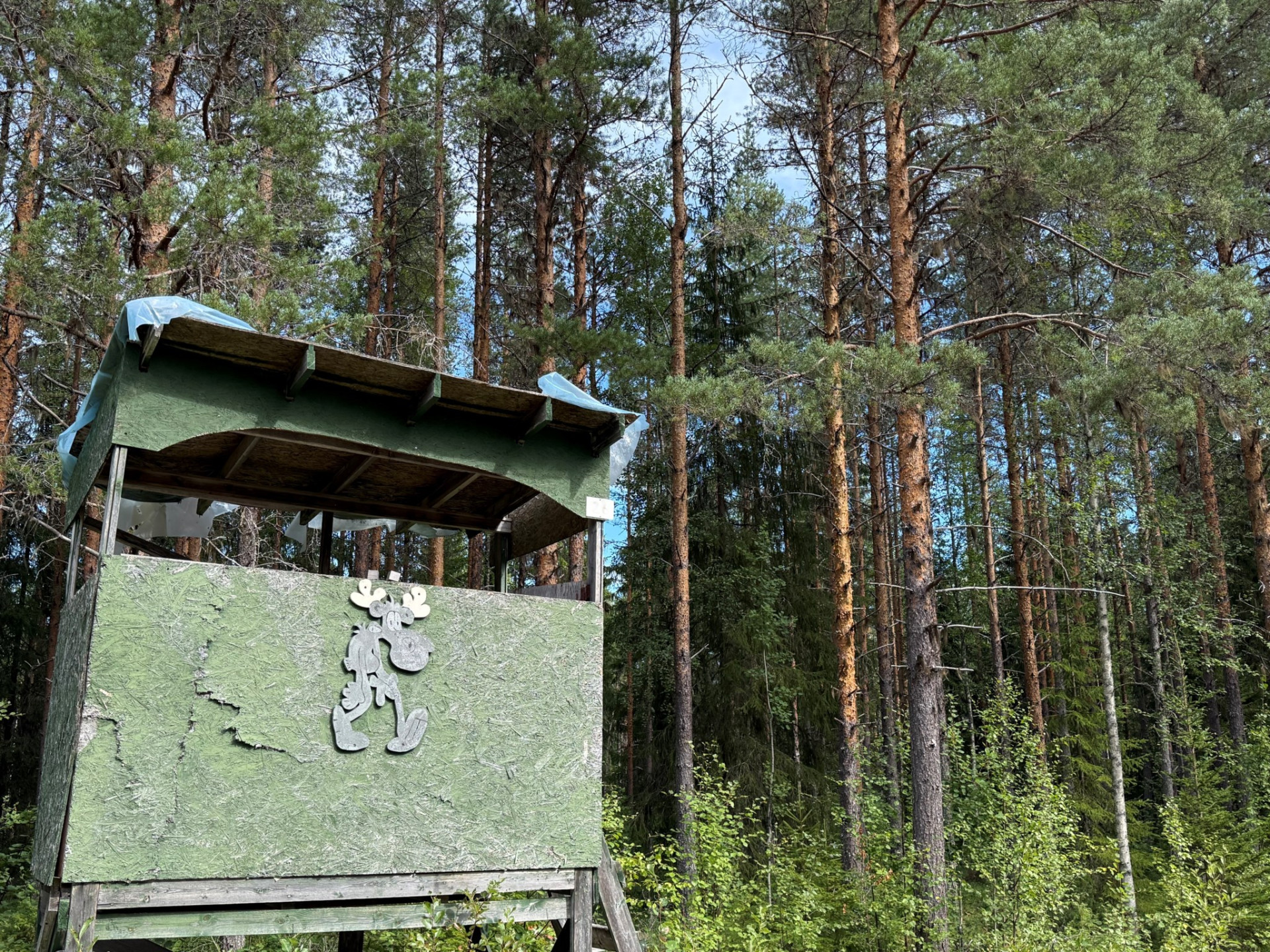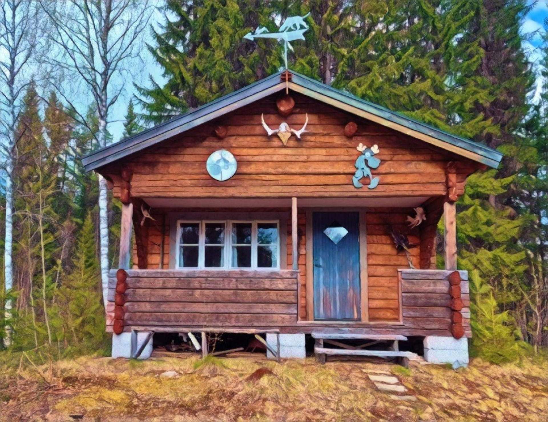 Det ingår en timrad skogskoja nere vid Lögdeälven som kan nyttjas för övernattning i vacker vildmarksmiljö.