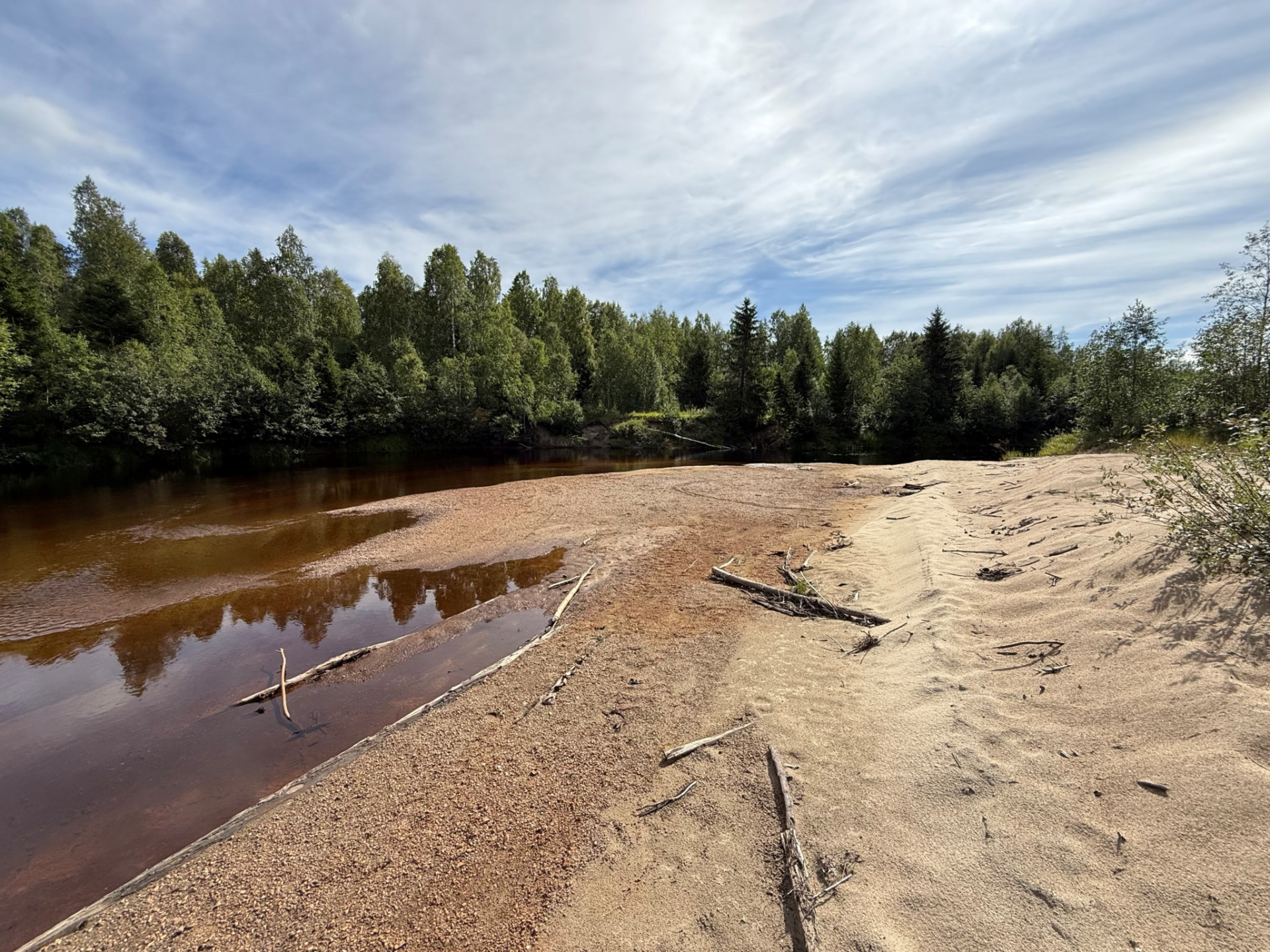 Ett stort skifte ca 146 ha med 1.4 km gräns mot vatten i Lögdeälven. Sandstrand. Utgångspris 5.995.000 kr. Fin skogsinvestering.